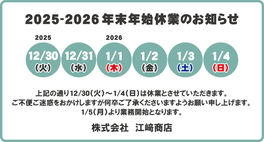 2025-2026年 年末年始休業のお知らせ